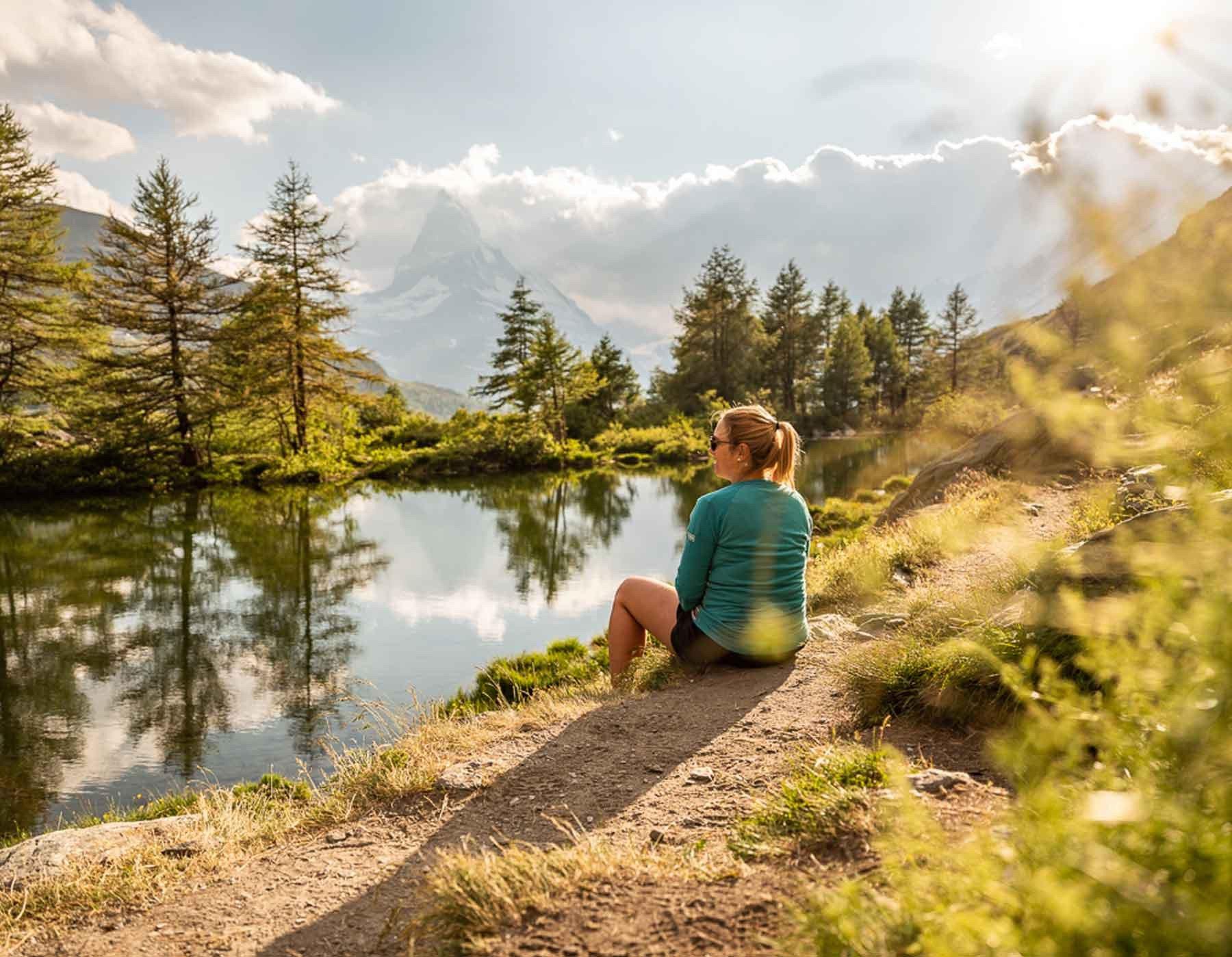 GrünseeDer Grünsee (2'300 m) ist der ideale Platz zum Entspannen während einer Wanderung. Picknicken, baden und dabei die Aussicht auf das Matterhorn geniessen.