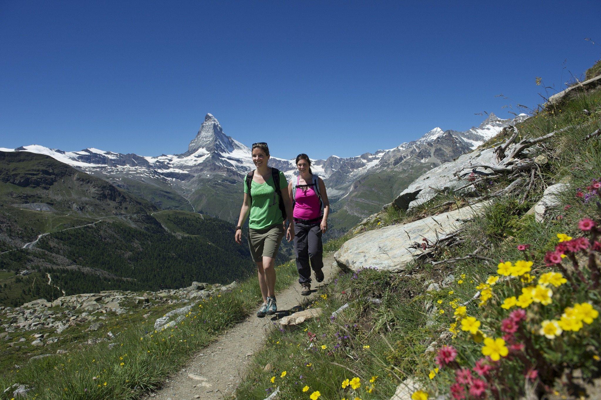 Der Weg führt zu zahlreichen Highlights der Zermatter Bergwelt. Unter anderem zu sehen: die Spiegelung des Matterhorns auf der Wasseroberfläche des Stellisees.